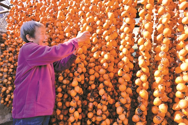 左权县麻田镇后山村村民利用晴好天气晾晒柿子