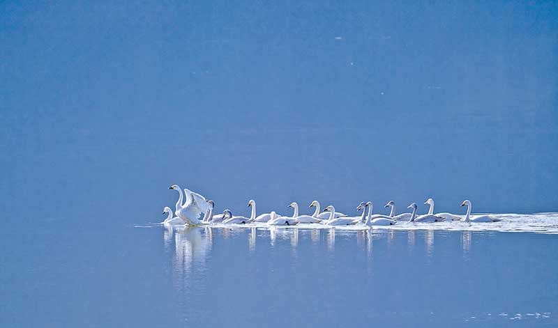 11月7日,在左权县滨河公园,一群身姿优雅的白天鹅时而休闲安逸地徜徉在水面,时而展翅飞翔、盘桓嬉戏。近年来,左权县大力整治河道、修建堤坊、扎坝蓄水、建设水景村,实现了“河畅、水清、岸绿、景美”目标,全力打造太行山中段最具特色的灵动靓丽生态水景观廊带。随着生态环境的日益改善,越来越多的迁徙鸟类来此停歇。这是白天鹅首次在此栖息。