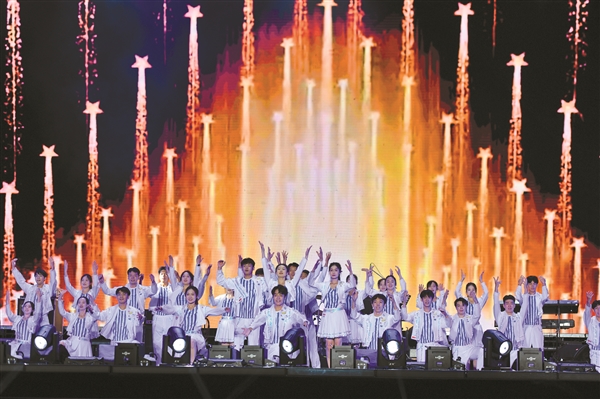 当晚,充满晋中元素、科技含量的无人机表演秀惊艳亮相晋中职业技术学院体育场上空,一曲充满激情活力的舞蹈《舞起来》拉开了文艺展演的序幕。舞蹈《让我们一起出发》《ON》《再次重逢的世界》《幸福的脚步》《秋瑾颂》等充分展现了大学生朝气蓬勃的状态、昂扬向上的姿态,以及对社会发展的期望、对美好生活的向往和对革命烈士的追忆。广受大学生欢迎的时刻乐队、遁一乐队、黑莎克乐队等数支大学生乐队演唱了《海阔天空》等大学生喜爱的经典曲目,赢得了在场观众的阵阵欢呼。最后,在全场挥舞的五星红旗中,大家齐唱《我和我的祖国》将本次文艺展演推向了高潮,祝愿祖国繁荣昌盛、祝福生活幸福安康成为在场所有人的共同希望。