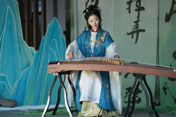 决赛现场,16位选手身着不同款式风格的华服,以折扇、油纸伞、长剑为道具,配以悠扬琴音、婉转歌声、流年袖舞等众多古风才艺,古韵今风交织,将古典华服韵味与现代大学生风采融为一体,展现出中华优秀传统文化的独特魅力。一等奖获得者、来自四川文理学院的归金涵同学感慨地说:“从初赛的视频拍摄到参加决赛,前后一共准备了30多天,在成功入围后,出于对传统文化的热爱和对非遗技艺的支持,我最终选择了黄色立领对襟短衫与黄绿色马面裙的搭配,活泼清新的色调暗合‘梨花院落溶溶月,柳絮池塘淡淡风’的意境,同时融入花鸟纹和山水纹等大量传统纹样,清新淡雅,寓意吉祥美好。”