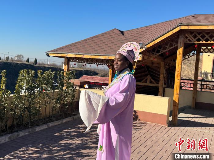 留学生石蓉身穿太谷秧歌戏服拍照留念。杨静 摄