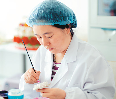 厨师讲究刀功,而做花馍的基本功在于“剪功”。手捏出形状后,要搭配上“剪功”,花馍才能栩栩如生。做孔雀、凤凰等花馍,每一片羽毛都要极其精细且均匀地剪出来,就像机器压制出来的一样,看上去就心旷神怡,养心又养眼,这十分考验做花馍的功底。接下来经过半小时的醒发,上锅蒸四十分钟,放凉后,再用可食用颜料上色。要做一个像样的花馍,细究起来需要100多道小工序,全靠手工揉捏而成,至少4到5天才能做好。