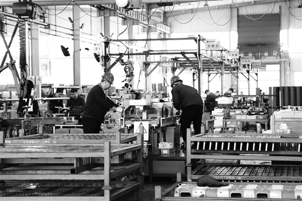 经纬智能纺织机械有限公司的生产车间内,工作人员正在赶工。
