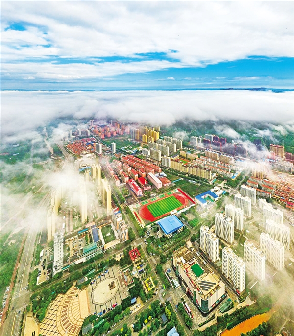 8月17日,雨后放晴,在蓝天白云的映衬下,左权县城区展现出了一幅生态宜居的美丽景象。将军广场、学校以及居民住宅楼有序分布,与纵横交错、植被繁茂的生态绿带、四通八达的道路共同构成了一幅和谐统一的画面,生动呈现出“清凉夏都”的独特魅力。