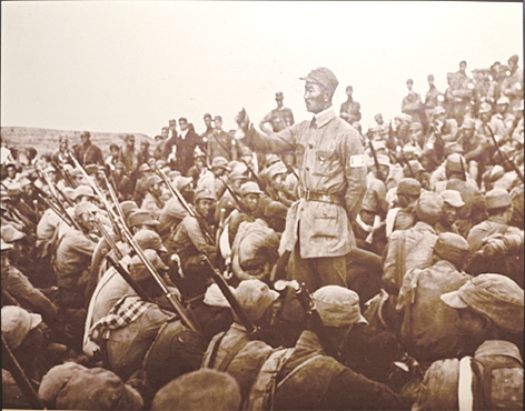 1938年,第一二九师三八六旅参谋长周希汉在粉碎日军“九路围攻”前进行战斗动员