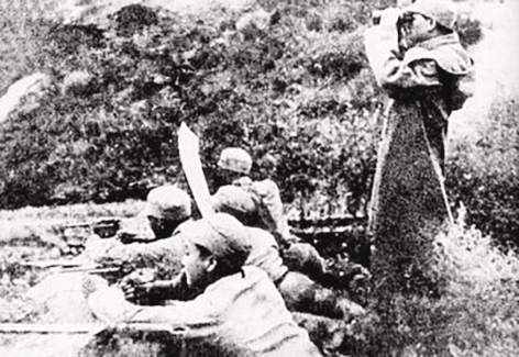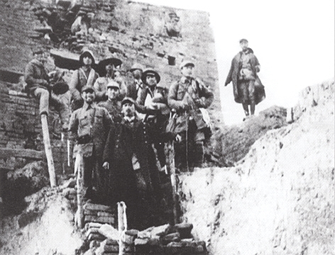 第一二九师三八六旅陈赓旅长(带照相机者)、周希汉参谋长(前排穿军大衣者)亲临榆社前线指挥作战
