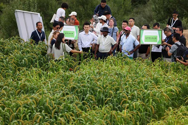 8月26日,参加第三届世界有机示范区大会的嘉宾在山西省大同市灵丘县一处有机种植基地实地观摩。 朱兴鑫 摄