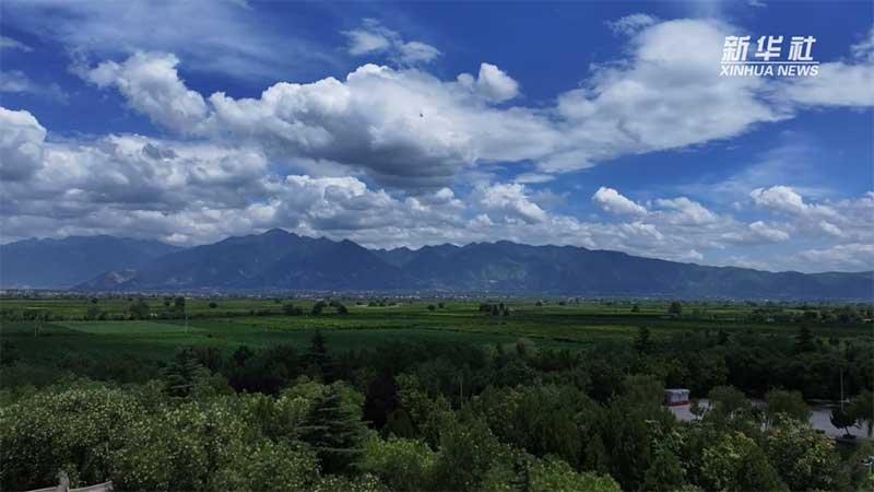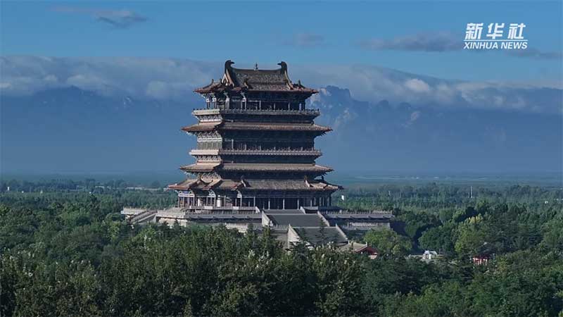 近日,山西省永济市的鹳雀楼景区迎来晴好天气,黄河岸畔的千年古楼与远处群山,天边白云构成一幅绝美的同框图景,成为游客镜头下的“爆款”画面。