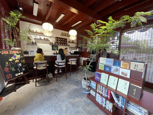 作为阅读体验的延伸,书房搭配西点、咖啡、奶茶、果茶等,为读者提供惬意的阅读空间。同时还设立文创区,冰箱贴、砖雕等近百种文创和非遗产品供人们选购。据书房负责人赵通介绍,书房开放一个多月以来,吸引我市城乡及榆次区周边县市的众多游客、市民和高校学生参观体验。