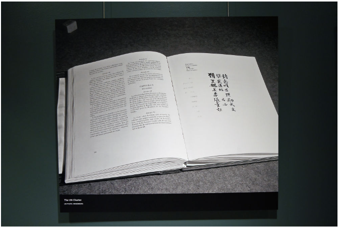 这是9月18日在位于纽约的联合国总部拍摄的“重振旧金山精神”展览的《联合国宪章》。 新华社记者 李睿 摄