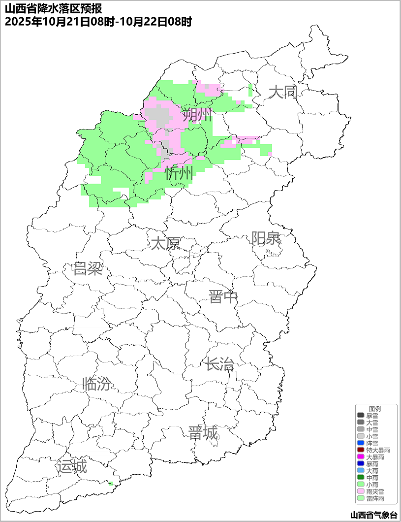 北中部多云转阴天,南部阴天间多云;忻州、吕梁、运城、临汾、晋城等地的部分和朔州、太原等地的局部地区有阵雨或小雨,北部山区有雨夹雪或小雪。