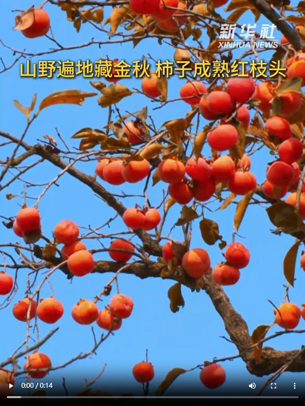 金秋十月,山西省泽州县大箕镇两谷坨村五千棵柿子树喜获丰收,火红的柿子挂在枝头,像一盏盏小灯笼,点亮了整片山沟,勾勒出一幅生动的秋日丰收画卷。秋风拂过,空气中弥漫着甜甜果香,大量游客来此感受金秋十月的野趣和诗意。