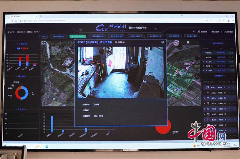 据乡镇包村干部、挂任里长村副书记的高艺卿介绍,一旦有老人在家摔倒,村委会的大数据平台就会马上收到预警信息。工作人员将及时查看老人家中的实时监控录像进行确认,若确实存在摔倒情况,将立即通知网格员或村干部。相关人员会第一时间赶到现场,根据情况的严重程度联系村医或拨打120,确保将老人及时送医。“整个流程不会超过10分钟。”高艺卿说。