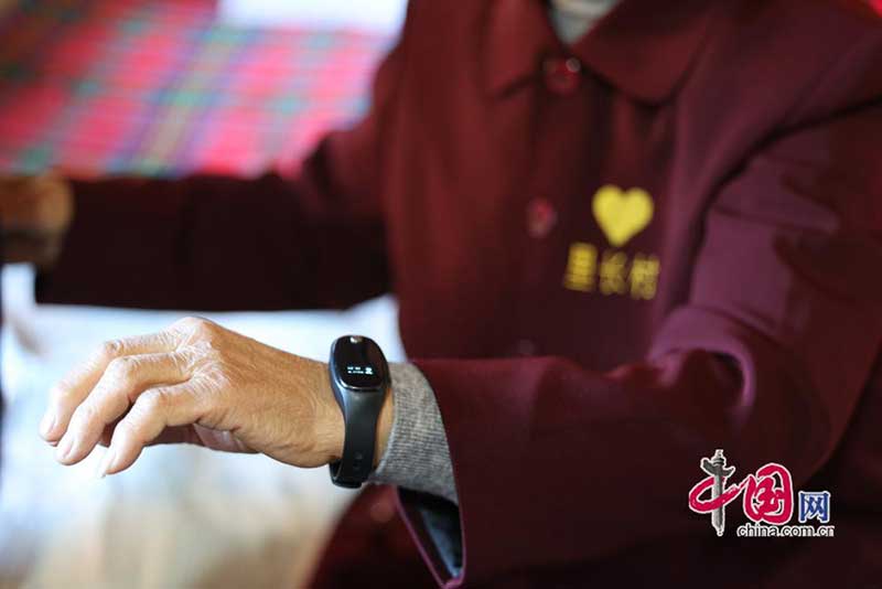 村里老人佩戴智能手环。中国网记者 杨楠 摄