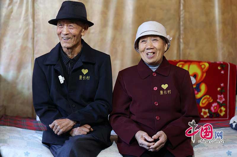 83岁的宋永德(左)和85岁的巩引籽老人讲述村集体为老人们负担新农合缴费的故事。中国网记者 杨楠 摄