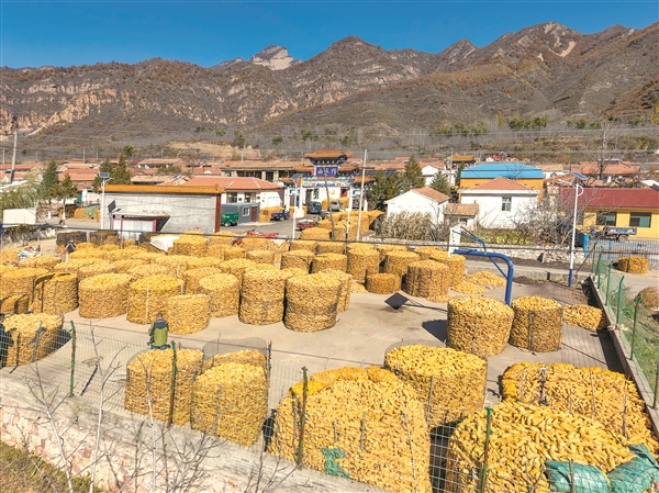 左权县拐儿镇西五指村的文体活动广场 金灿灿的玉米堆满晒场