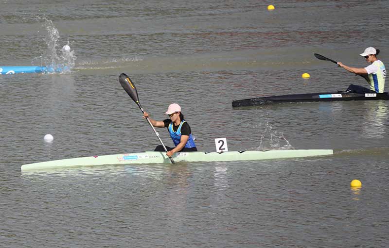 女子500米单人皮艇比赛分预赛、半决赛和决赛三个阶段,共有38名选手进行争夺。山西选手张鲁茜和周月欣连续过关斩将,一路冲进决赛。