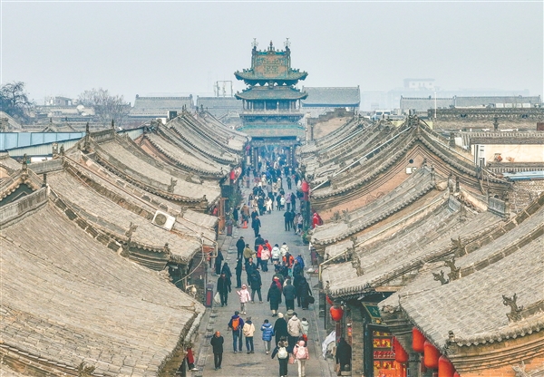 1月1日,中外游客游览平遥古城,在感悟千年古城历史文化中欢度新年。通讯员 梁生仁 摄