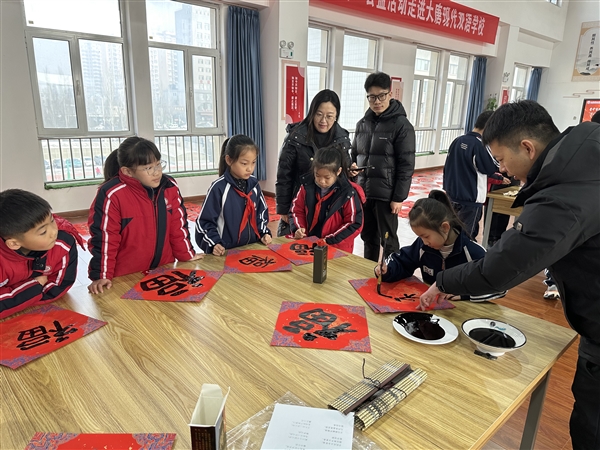 不少学生主动上前请教执笔、运笔技巧,书法家们耐心俯身指导,手把手传授起笔收锋、间架结构的门道,让学生们沉浸式体验中华优秀传统文化。“我真切感受到了汉字的魅力,这是最有意义的新春礼物。”学生周冰义捧着刚写好的福字,脸上满是喜悦地说道。