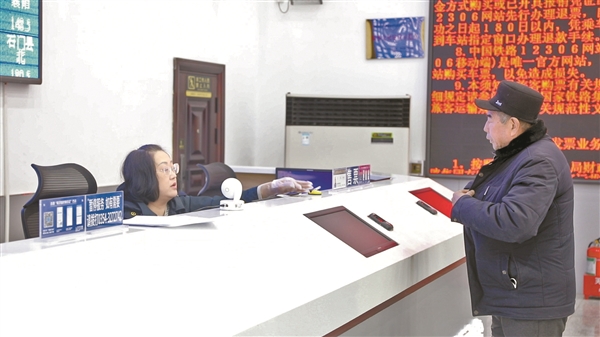 榆次站工作人员为老年旅客办理购票业务。 记者 张浩亮 摄