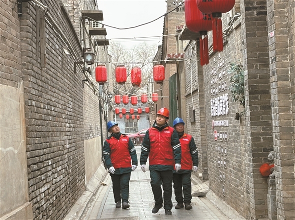 国网平遥县供电公司运检部工作人员高天辉、郝庆永、侯声誉检查民宿用电安全。