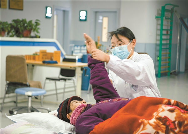 太行医院护士杨艳蓉为患者做康复。