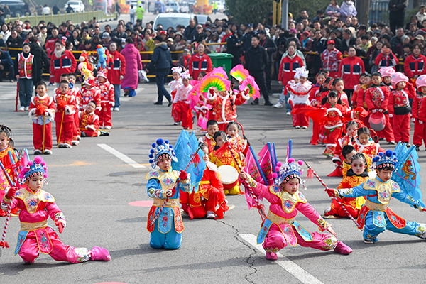 小白乡方阵一出场,三辆彩车如三匹骏马,驰骋在乡村振兴的康庄大道上;憨态可掬的大头娃娃、灵动诙谐的划旱船,这是阳邑乡新村带来的多彩民俗表演方阵;白城村腾跃吉祥、雄浑豪迈的舞狮、战鼓,曹庄村的大头娃娃、媒婆、花轿、丑相公、腰鼓也亮出了各自的绝活,让大家感受到浓浓的风俗年味。