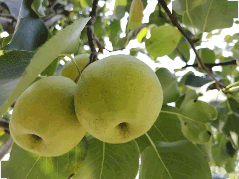 其果实呈鲜亮的扁圆形,果面以黄绿色为底,向阳处常泛着一抹红晕。同川梨素以皮薄质细、核小汁多、香味醇厚而著称,品质出众。