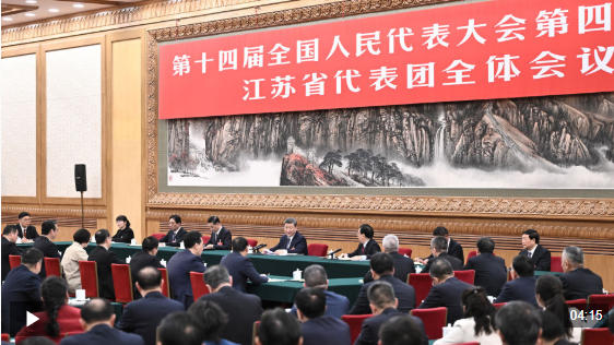 这是总书记2023年初在江苏全票当选十四届全国人大代表后,连续第四年参加本团审议。