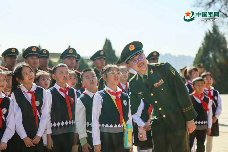 去年清明节,李俊杰带领驻地中小学生走进太原烈士陵园,开展一场以“国防绿”携手“红领巾”的沉浸式国防教育实地教学。活动现场,李俊杰引导孩子们辨认、诵读碑文,并深情讲述革命先烈为民族解放、人民幸福浴血奋战的英雄事迹。