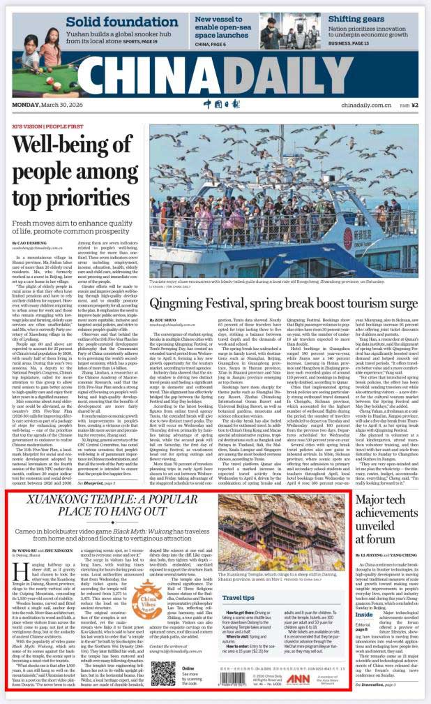随着游戏《黑神话:悟空》走红,其中以悬空寺为实景取景,让这座古刹一跃成为中外游客必打卡胜地。