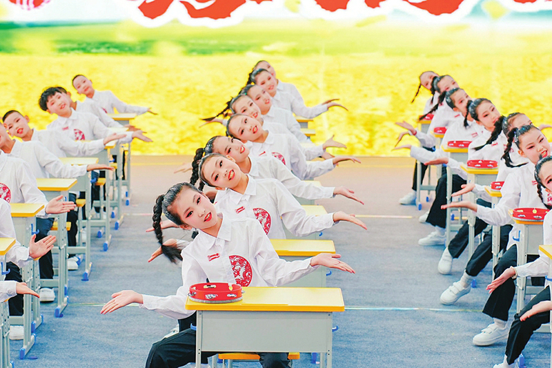 2026年晋中市“奔跑吧·少年”儿童青少年主题健身活动启动仪式暨中小学生课桌舞展示活动举行,方寸课桌化为少年们释放激情、展现创意的灵动舞台。本报通讯员张杰摄