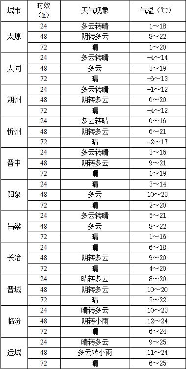 山西城市天气预报