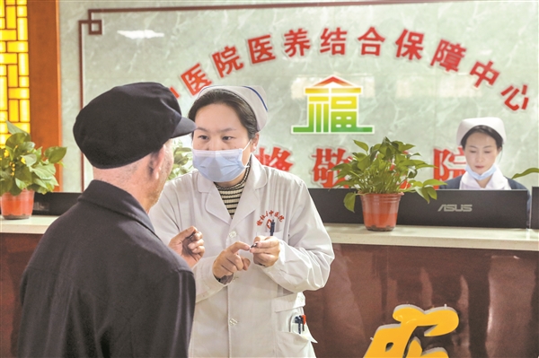 图为榆社县中医院医养结合保障中心(文峰敬老院)医护人员与老人耐心交流。记者 白桾煜 摄