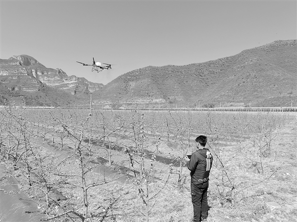 4月6日,左权县和平果业农民专业合作社的技术人员操控无人机,开展春季果树管理作业。当下正值果树开花季,该合作社抢抓时令,对5个种植基地的200余亩苹果树、樱桃树、梨树开展防病虫害、施营养肥喷洒作业,为今年果品丰产、农民增收筑牢基础。