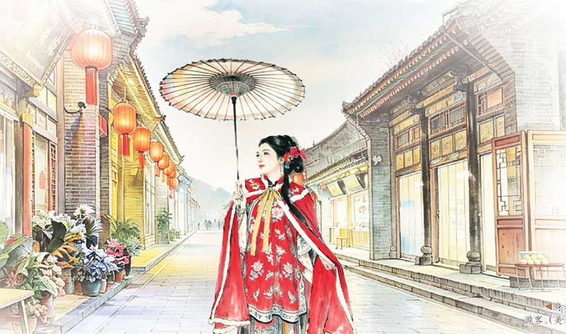 身着古装旅拍的游客。(美术处理)