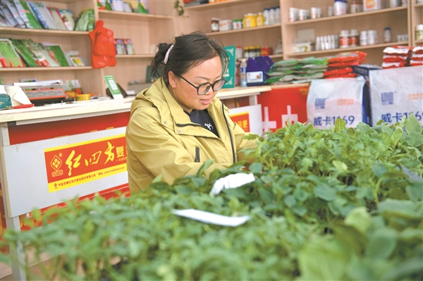 太谷区一家农资商店内销售人员正在整理各类种苗