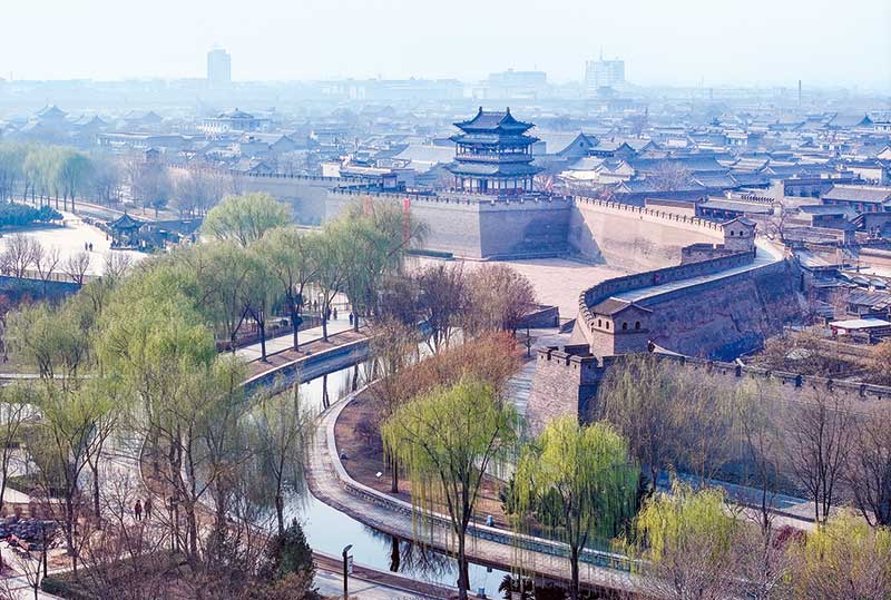 平遥古城迎薰公园航拍